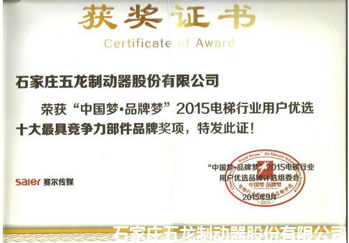 “五龍制動器”獲得十大最